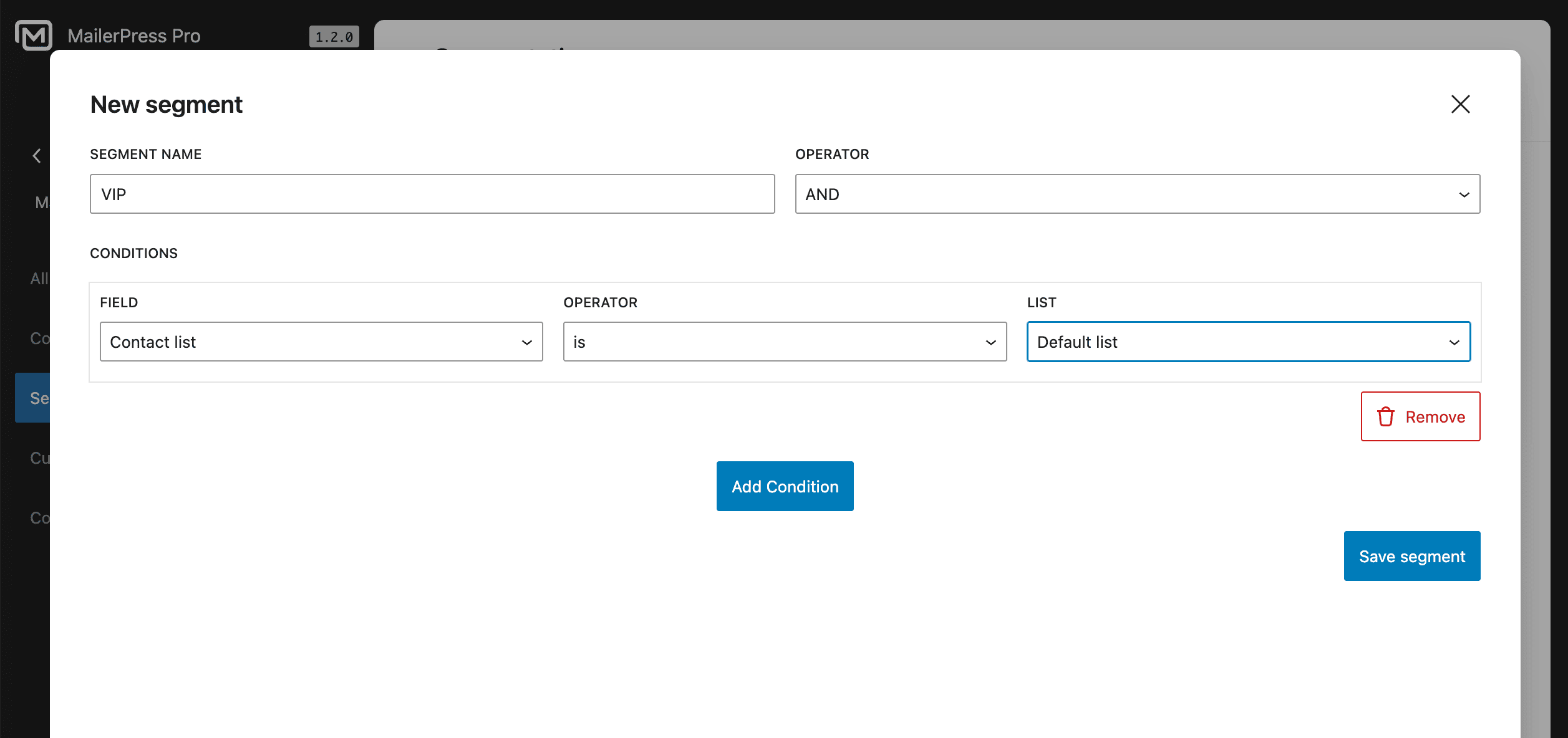 Click the Save segment button once you’re satisfied.
