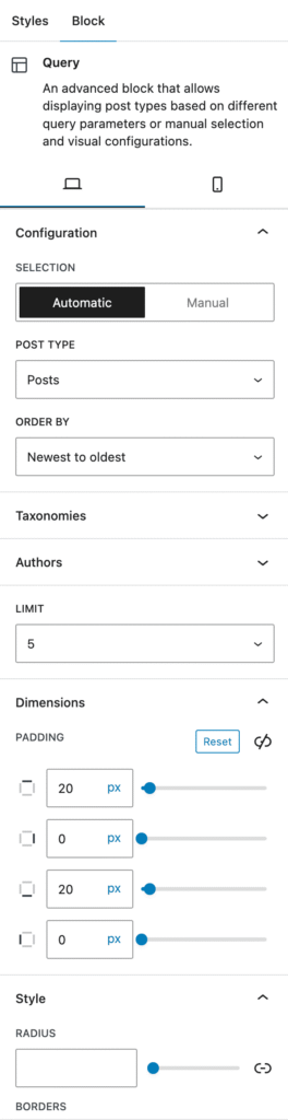 From the block list, select the “Query” block to dynamically display your latest posts.