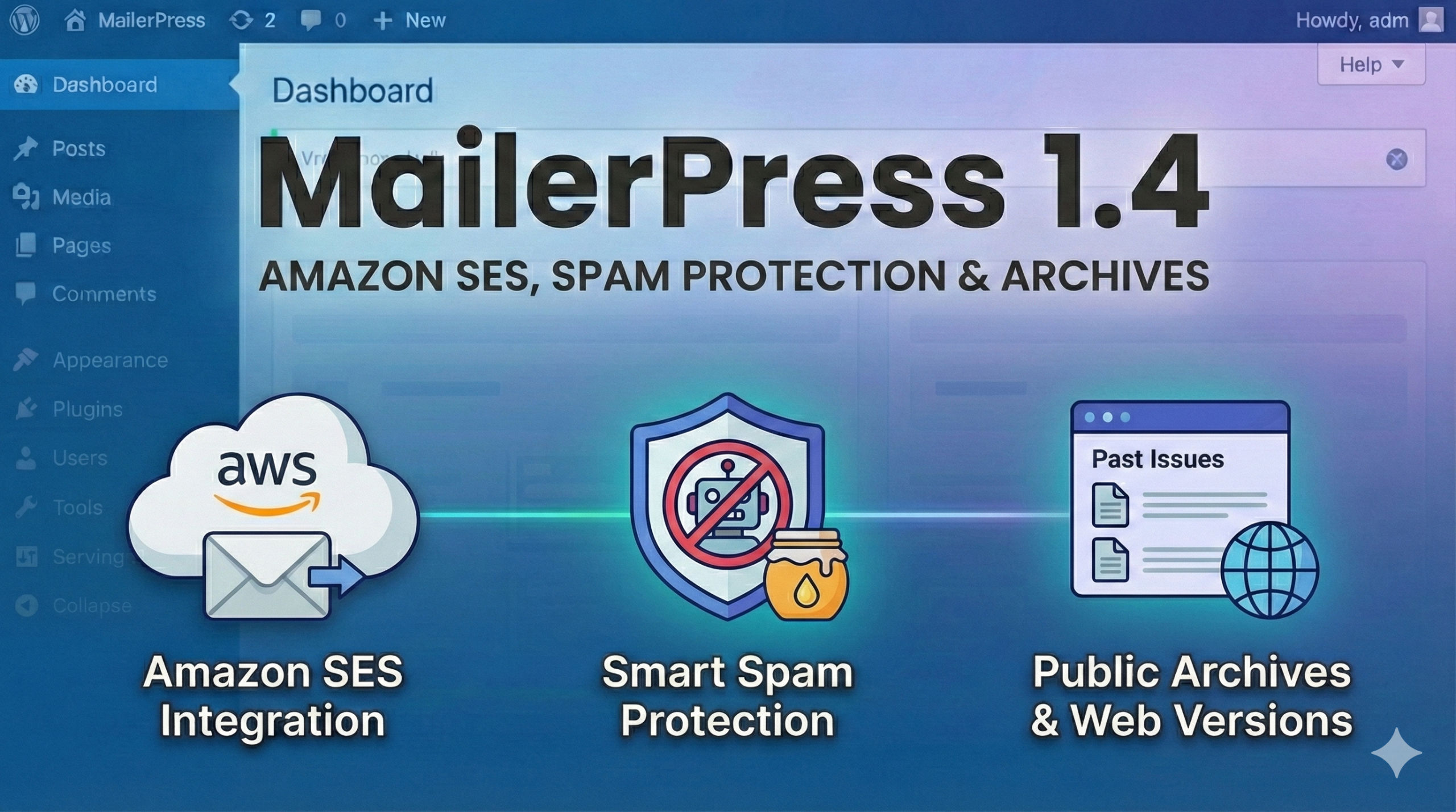 Pour les expéditeurs à fort volume, la fiabilité et l’efficacité des coûts sont primordiales. MailerPress 1.4 introduit la prise en charge native d’Amazon SES (Simple Email Service).